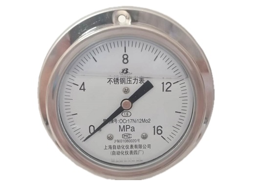 Y-B系列全不锈钢压力表广泛应用于石油,化工,化纤,冶金,电站等工业部门对耐蚀,抗振要求较高的工艺流程中测量各种介质的压力,上海自动化仪表四厂生产的Y-153B-FZ不锈钢耐震压力表0-16MPa轴向带边型,采用全不锈钢材料制成,仪表具有整体机构设计合理,工艺精致,有较高的测量精确度和持久的稳定性,不仅在国内被广泛应用,而且可提供出口,尤其为国内用户对引进国外先进技术装备中的同类仪表实现国产化的理想配套产品。