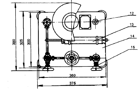 校验泵和活塞部分安装在同一底座(14)上与导管(9)相连,中间装有针形阀(2)。整个压力计由四个水平调节螺丝(11)支撑,并借以装于底座上的水平泡(12)用以校准水平位置。